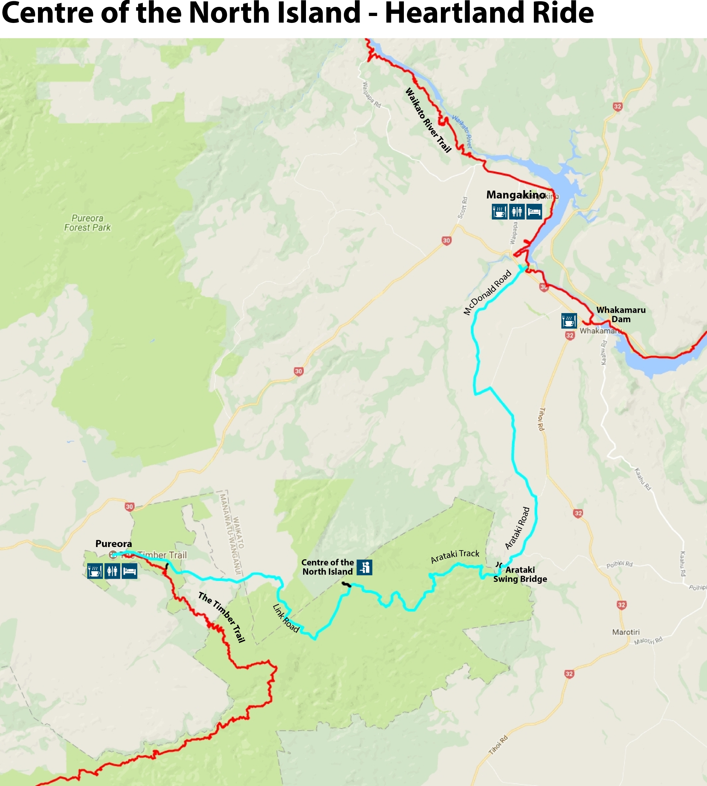 This route links with the Waikato River and Timber Trails and therefore their local transport connections to service towns such as Taumarunui and Taupō.