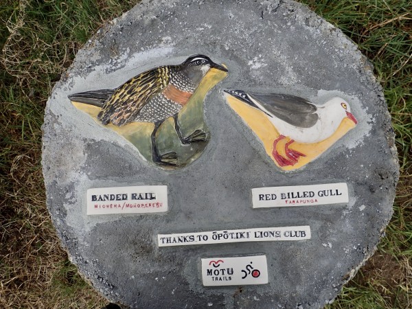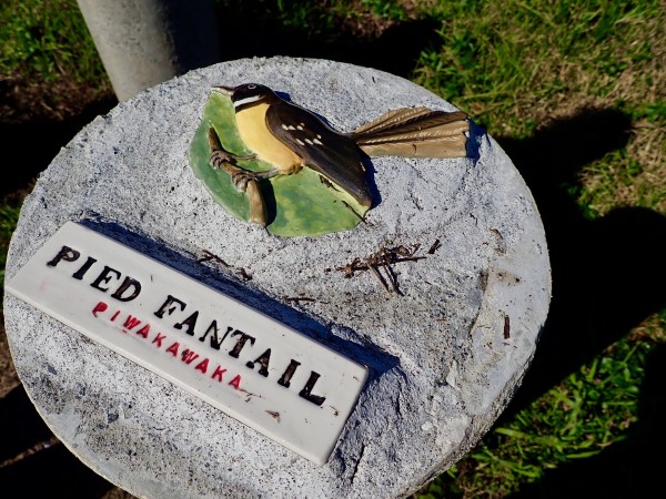 The Motu Trails celebrate the increasing birdlife in the form of handmade ceramic tiles made by local potters Margaret and Stuart Slade.