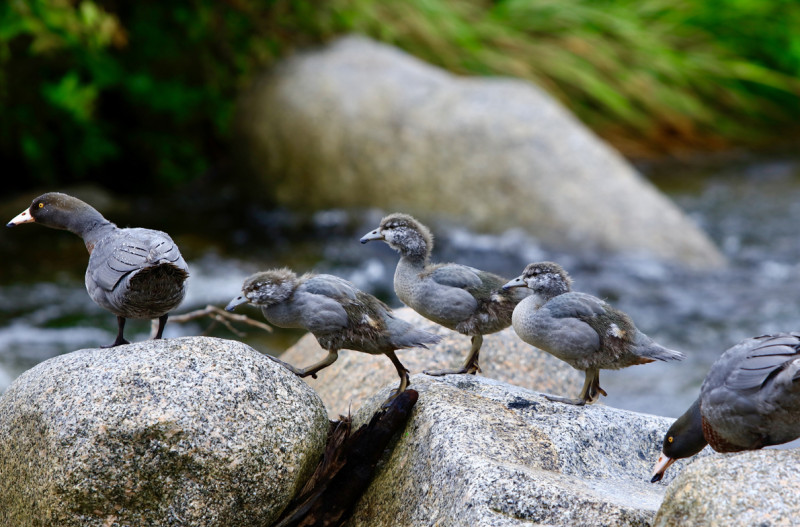 Mum and Dad, and three precious whio ducklings (Richard Rossiter)