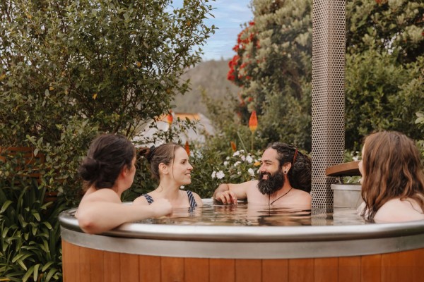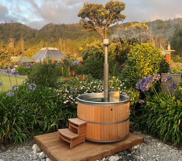 Soak, unwind and watch the sun set in a wood-fired hot tub at Gentle Annie Seaside Accommodation and Camping Ground.