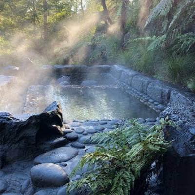 Waikite Valley Hotpools overlooks the Waikite Valley, native bush and surrounding geothermal activity. There, you can experience the natural, hot geothermal water of the Te Manaroa Spring, the largest single source of 100% pure geothermal water in New Zealand. There are six outdoor pools as well as private pools.
