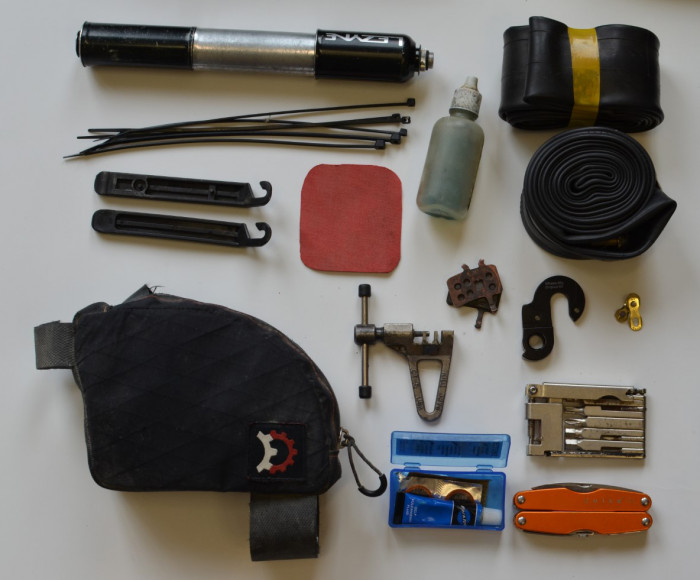 - Spare tubes, preferably two, plus tyre levers and pump